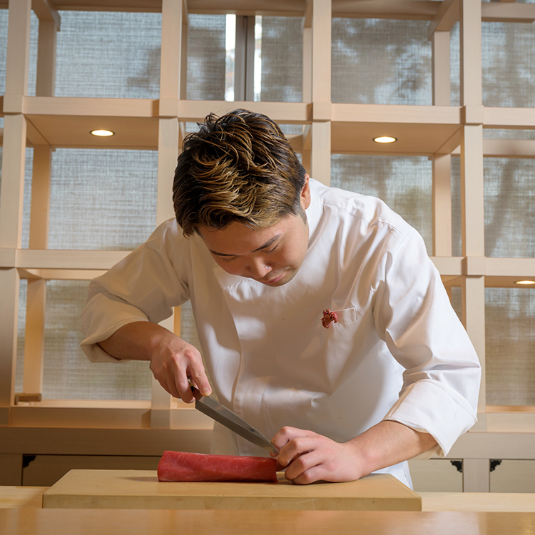 見事な鮨や刺身、懐石料理を美しく仕上げてゆきます。